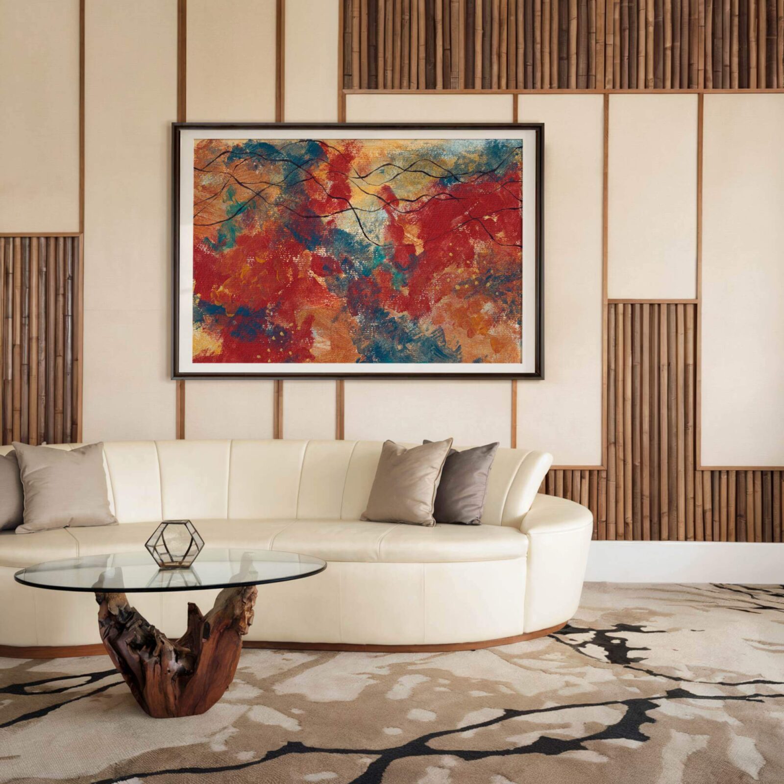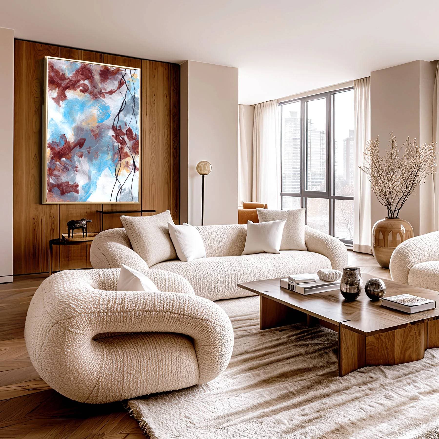 I’m obsessed with how Viki Thorbjorn’s abstract art has completely elevated my home! The depth, movement, and colour in this piece bring so much energy and emotion into the space.
