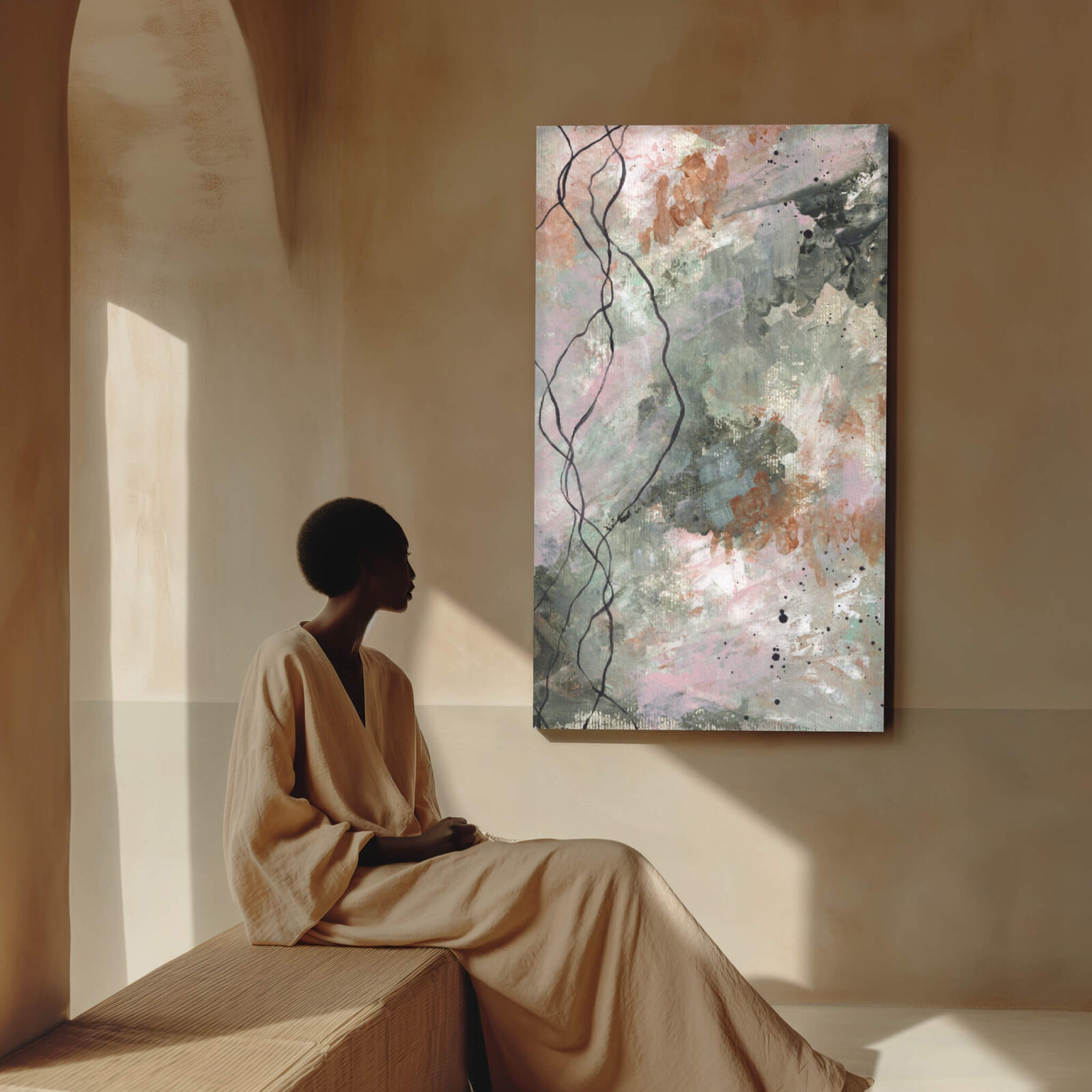 This isn’t about aesthetic harmony or creating the perfect Pinterest shot. It’s about emotional utility, how the artwork interacts with the nervous system, the purpose of the room, and the people moving through it. Especially when the work carries weight, stillness, or emotional charge, where it lives in the room can either support presence, or quietly disrupt it.